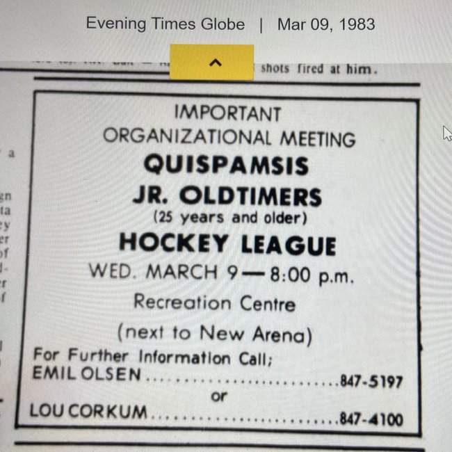 The Quispamsis Moosehead Oldtimers Hockey League was formed in 1983 by Emil Olsen and Lou Corkum. Play began in the 1983-84 season at the new Quispamsis Memorial Arena with 4 teams.